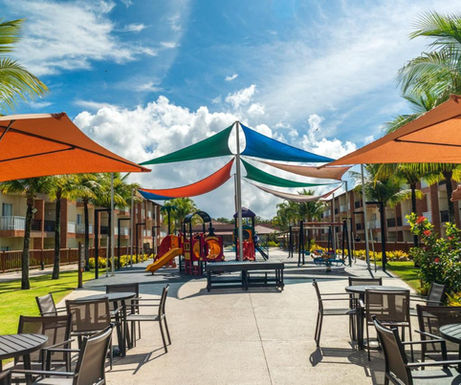 A estrutura segura e moderna permite que as crianças brinquem com liberdade. O playground e as piscinas infantis são projetados para garantir horas de diversão, permitindo que os pais desfrutem das comodidades do resort com a tranquilidade de saber que seus filhos estão felizes e bem cuidados.