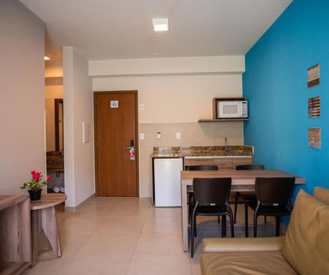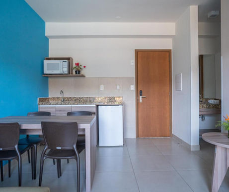 As acomodações do ONDAS PRAIA RESORT são apartamentos modernos e funcionais, ideais para famílias que valorizam espaço e praticidade. As unidades contam com sala de estar, varanda e uma mini cozinha americana (diferencial importante), oferecendo a conveniência de um flat com os serviços de um resort All Inclusive.